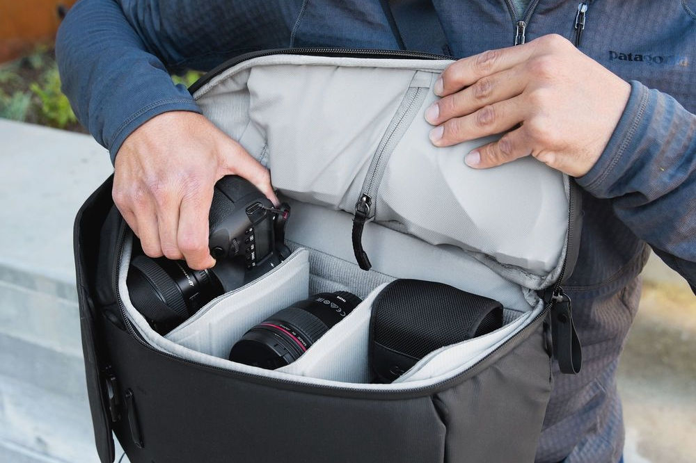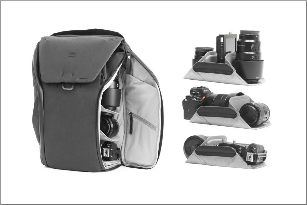 Silné stránky batohu jsou přístup ke všemu bez nutnosti odkládání na zem, nenápadnost, naprosto dostatečná deštiodolnost a také naprostá univerzálnost. Není to totiž jen batoh na foťák, ale naprosto na cokoli. Přepážky lze libovolně přeskládat, jak ukazuje jeden z obrázků. Případně je klidně i úplně odstranit. Do batohu je přístup jak z vrchní strany, tak i z obou stran bočních. Při složitějších „tasících“ technikách, například když vytahujete foťák z jedné strany a potřebujete jiný objektiv ze strany druhé, je možno si vypomoci s výše uvedenými pomůckami řady Peak Design Capture.