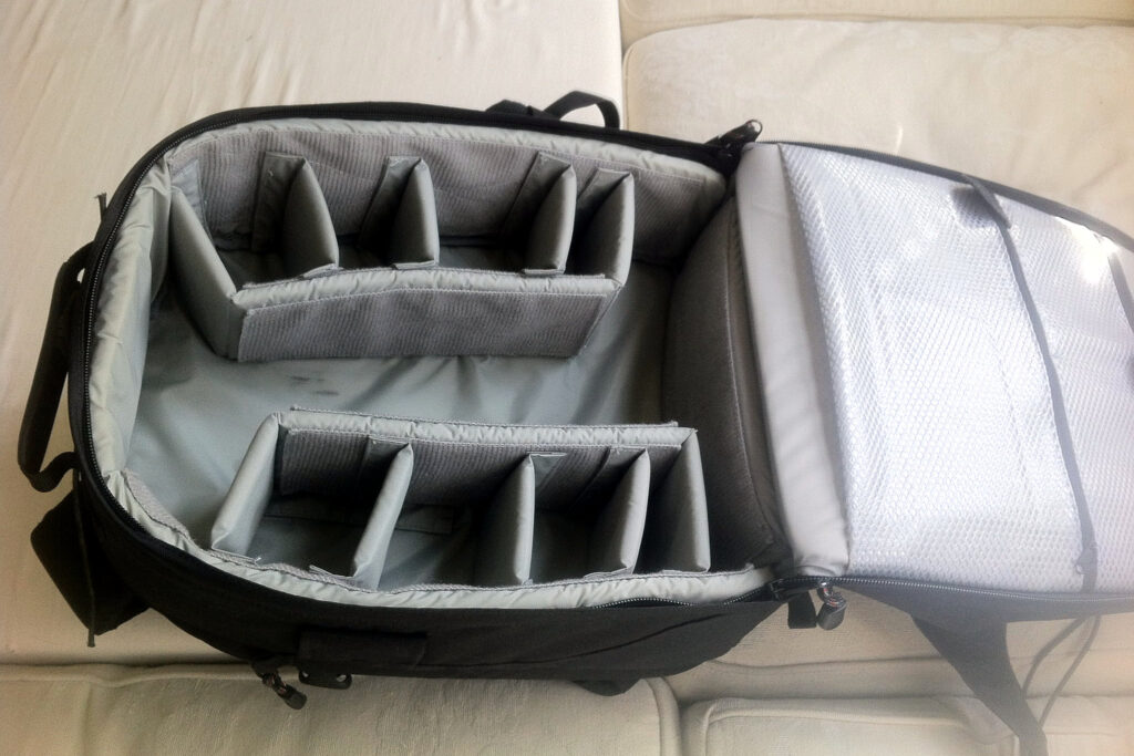 Jak je tato konstrukce batohu super na přenášení a na přehlednost, není už tak super na praktické použití v terénu. Přenést výbavu z domu někde do krytých prostor, tam v pohodě batoh otevřít na koberci, to je asi tak jediné rozumné použití, co mě napadá. Ale určitě se mi neosvědčil na focení venku a už vůbec ne venku s potřebou rychlého přístupu k potřebnému vybavení. Výlety s tímto batohem nebyly ani trochu příjemné. Prostě komfort přístupu do tohoto typu batohu byl ve srovnání s komfortem přístupu do brašny tak trochu na úplně jiné úrovni. Po půlroce šel z domu.
